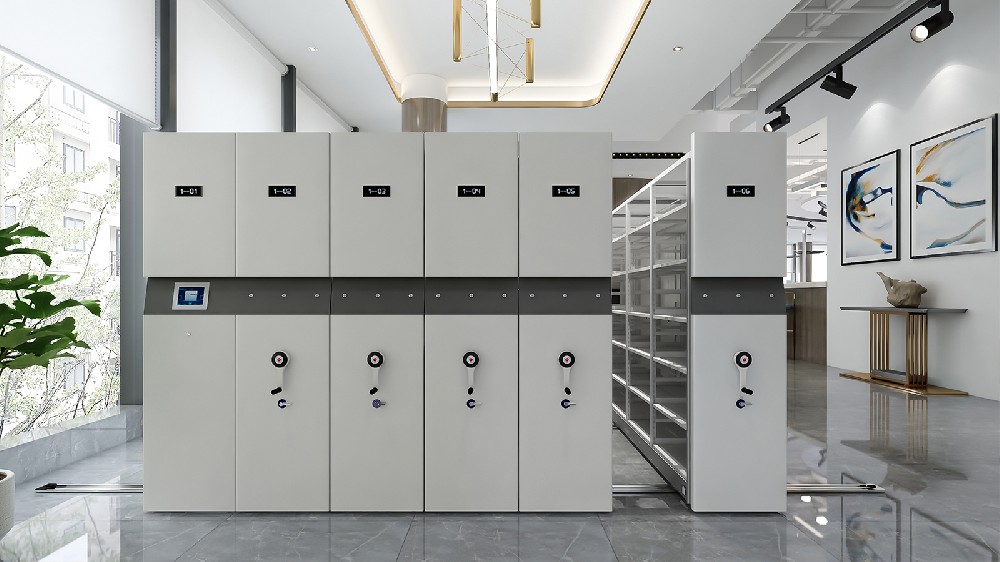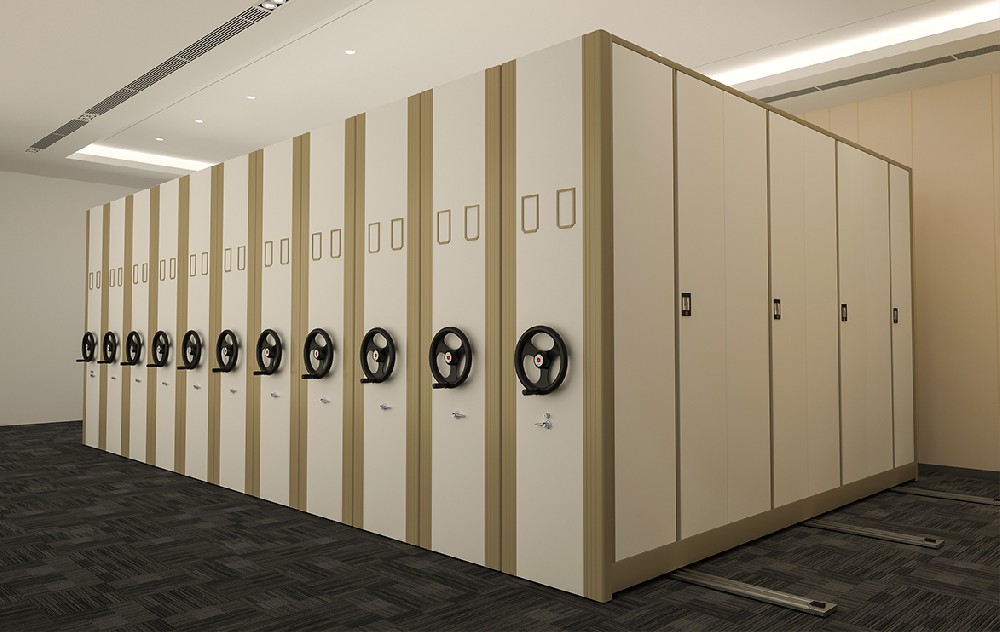 密集架是文件柜存儲量的2.5倍,存儲空間大